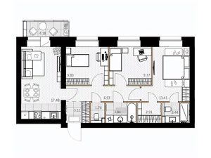Продается 4-комн. кв-ра площадью 85.61 кв.м на 2 этаже 8 этажного кирпичного дома в Дом ''Есенин'' ГК Кронекс. Добро пожаловать в авторский дом ''Есенин'' новое слово в городском комфорте. Обширная закрытая территория проекта граничит с сектором низкой застройки, что обеспечивает свободный обзор пространства даже из окон нижних этажей. Район отличается разнообразной сервисной инфраструктурой в 5-10 минутах ходьбы от дома. При этом оживлённость улицы не доставит беспокойства будущим жильцам, благодаря максимальной звукоизоляции окон. Особенной гордостью создателей проекта является авторская ландшафтная архитектура, включающая множество зон для отдыха детей и взрослых, собственный парк и поле для командных спортивных игр. Авторский дом ''Есенин'' сочетает масштаб и технологичность с тёплой эстетикой и уютной обособленностью, что придётся по душе ценителям камерной атмосферы старого города.АрхитектураФасад дома выполнен в сдержанной цветовой гамме, где кирпичная кладка приятного оттенка гармонично сочетается с темными элементами отделки. Это придает зданию элегантность. Большие окна, обеспечивают отличное естественное освещение в квартирах. Остекленные балконы добавляют современности и функциональности, предоставляя дополнительное пространство для отдыха и наслаждения видами.