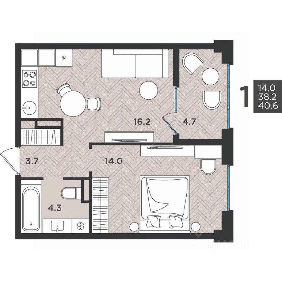40 м² · Этаж 7 из 12