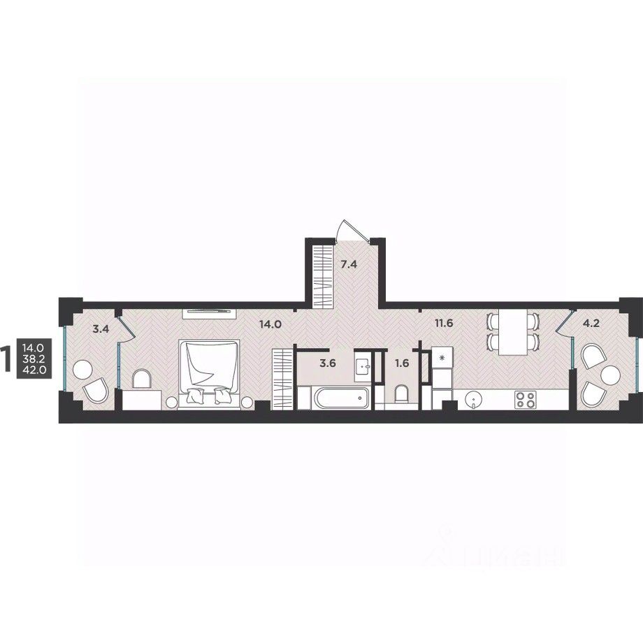 42 м² · Этаж 4 из 12
