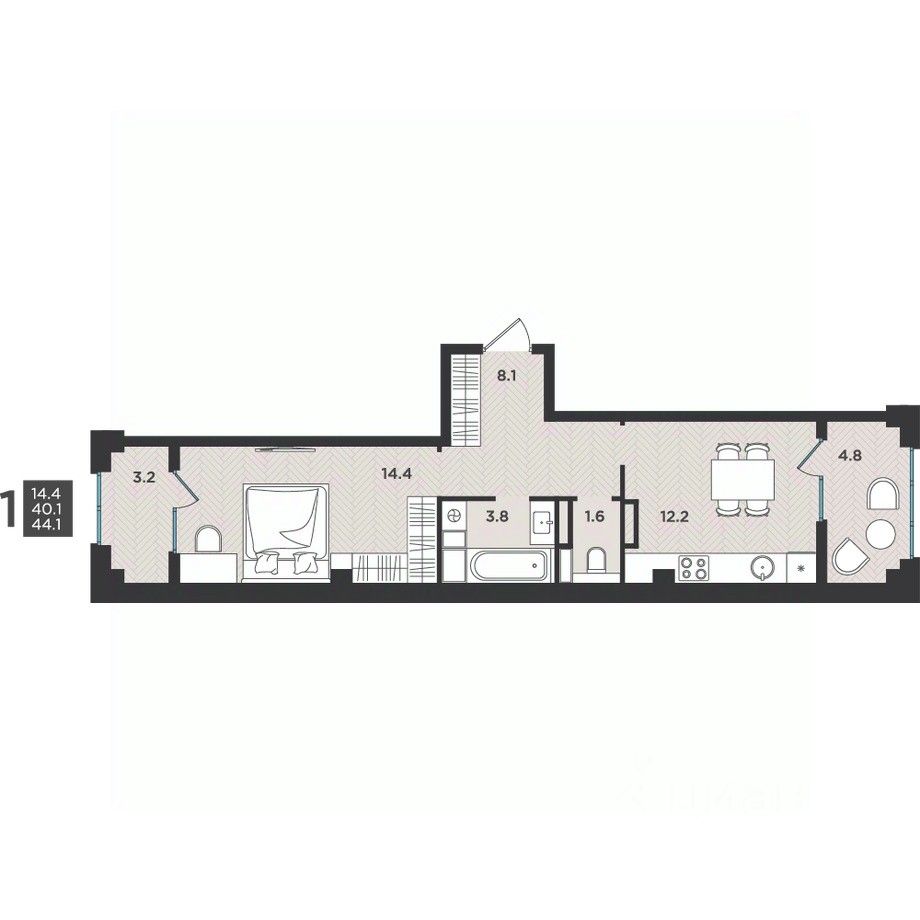44 м² · Этаж 8 из 12