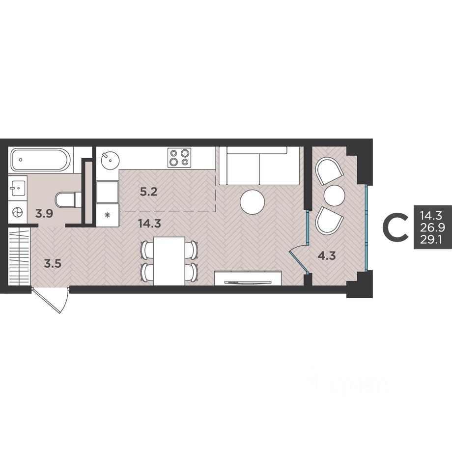 26 м² · Этаж 3 из 12