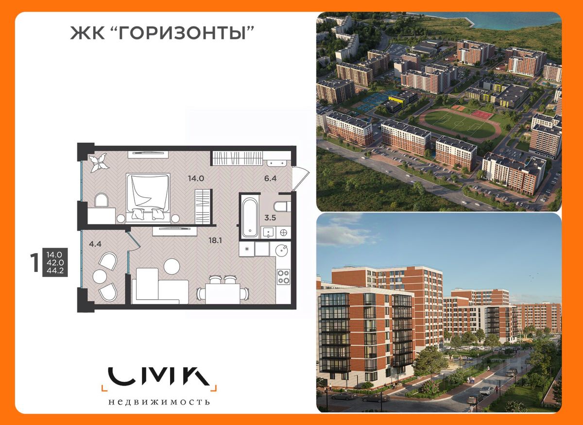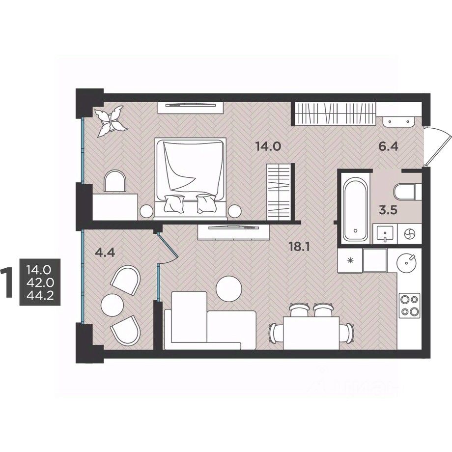 44 м² · Этаж 1 из 12