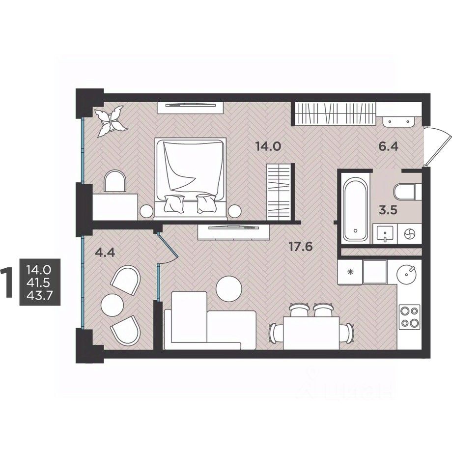 43 м² · Этаж 2 из 12