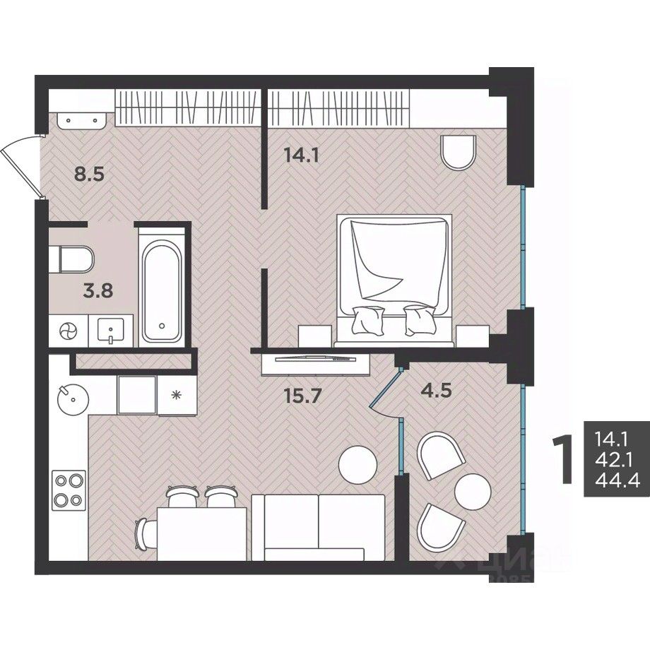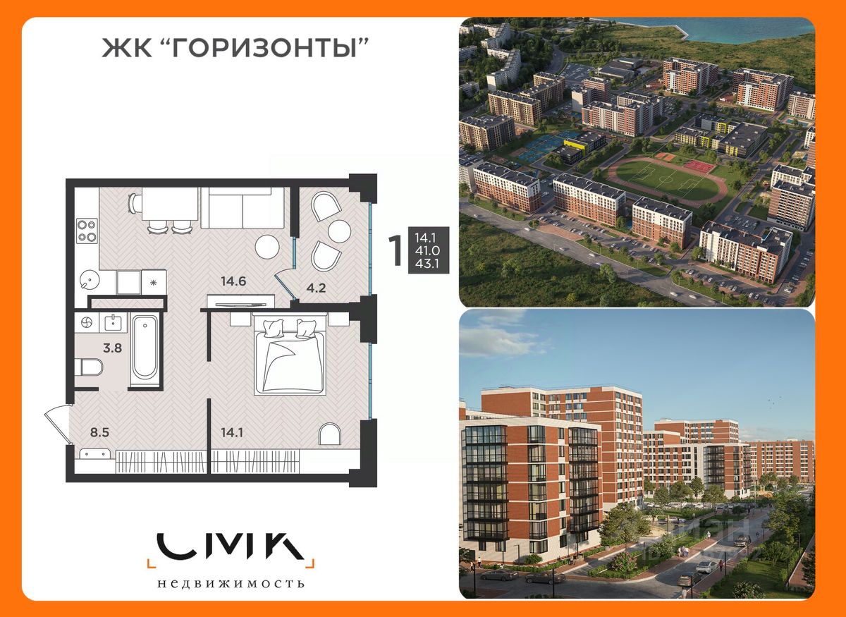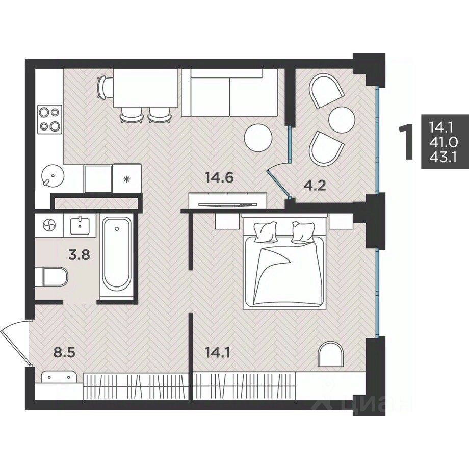 43 м² · Этаж 8 из 12
