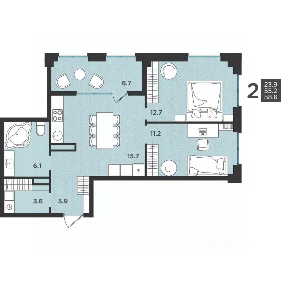 58 м² · Этаж 6 из 12