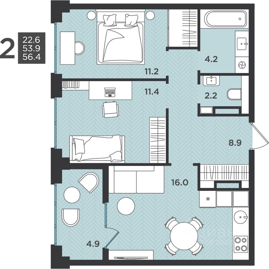 56 м² · Этаж 9 из 12