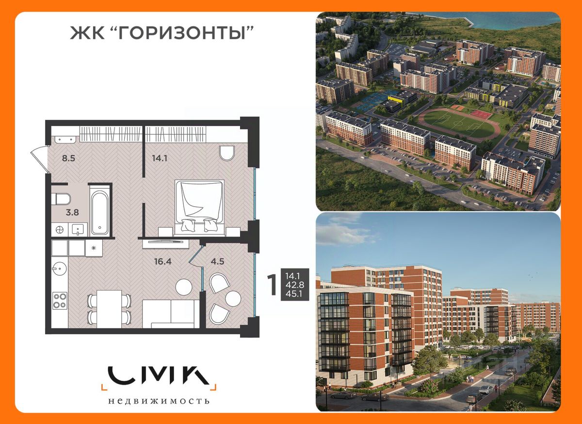45 м² · Этаж 1 из 12