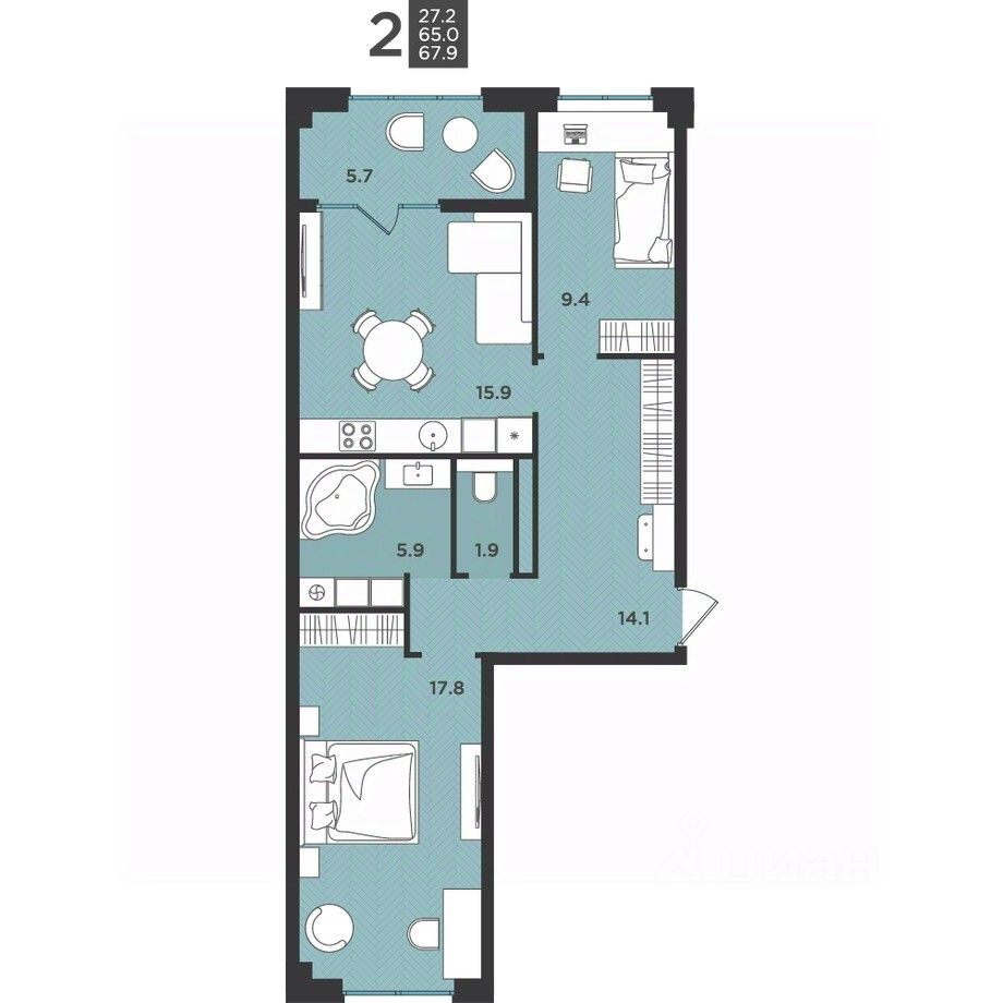 59 м² · Этаж 2 из 12