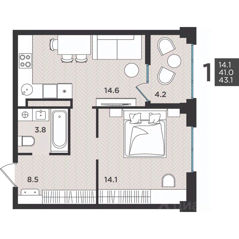 43 м² · Этаж 10 из 12