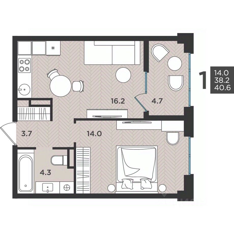 39 м² · Этаж 4 из 12