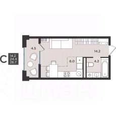 34 м2