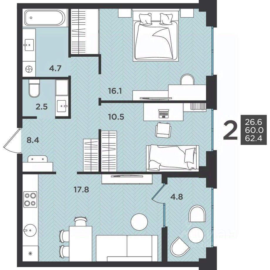 62 м² · Этаж 4 из 12