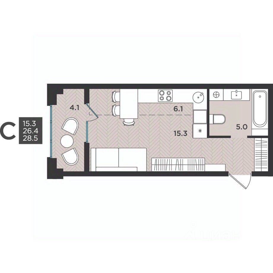26 м² · Этаж 8 из 12
