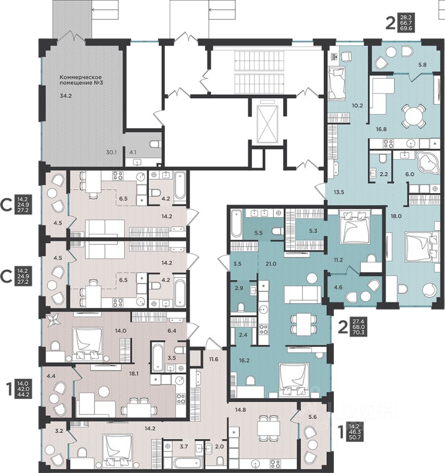 34 м² · Этаж 9 из 12