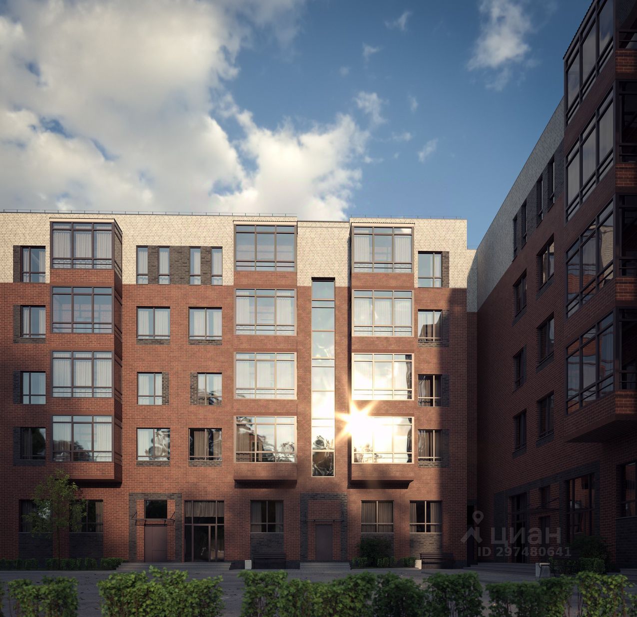 Современный фасад с индивидуальными архитектурными органично впишется в городской пейзаж и подчеркнет высокий статус жильцов дома.