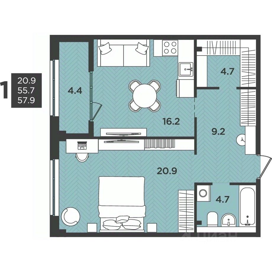 продам 1-к, Крымская, 1.1 стр.7 173 334 ₽
