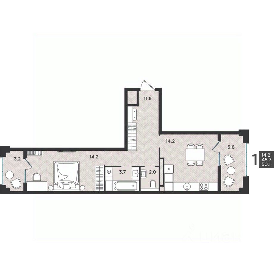 продам 1-к, Крымская, 5 стр.6 233 342 ₽