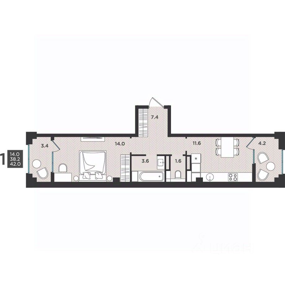 продам 1-к, Крымская, 5 стр.5 233 640 ₽