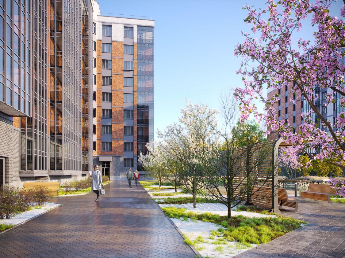 ДВОР: Благоустроенный двор: разновозрастные детские площадки с антитравматическим покрытием, зона street workout: уличные тренажеры и турники, веревочная пирамида, велопарковки, зоны отдыха со скамейками, озеленение территории, малые архитектурные формы. Двор свободный от машин. Дренажная система ''двор без луж''.