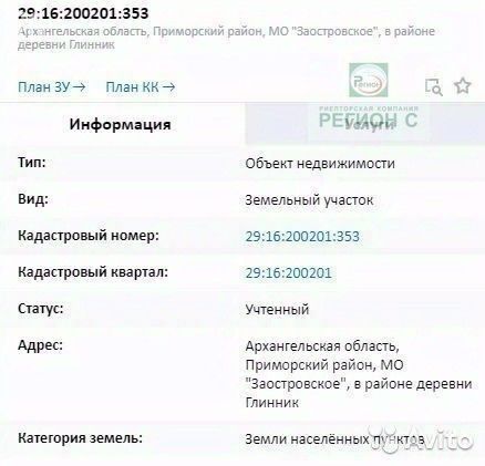 Объект 70. Земельный участок, земли населенных пунктов (кадастровый номер 29:16:200201:353, 10 соток - (деревня Глинник, МО Заостровское, у реки, близко от города Архангельска). #объект в нашей базе 9114376#