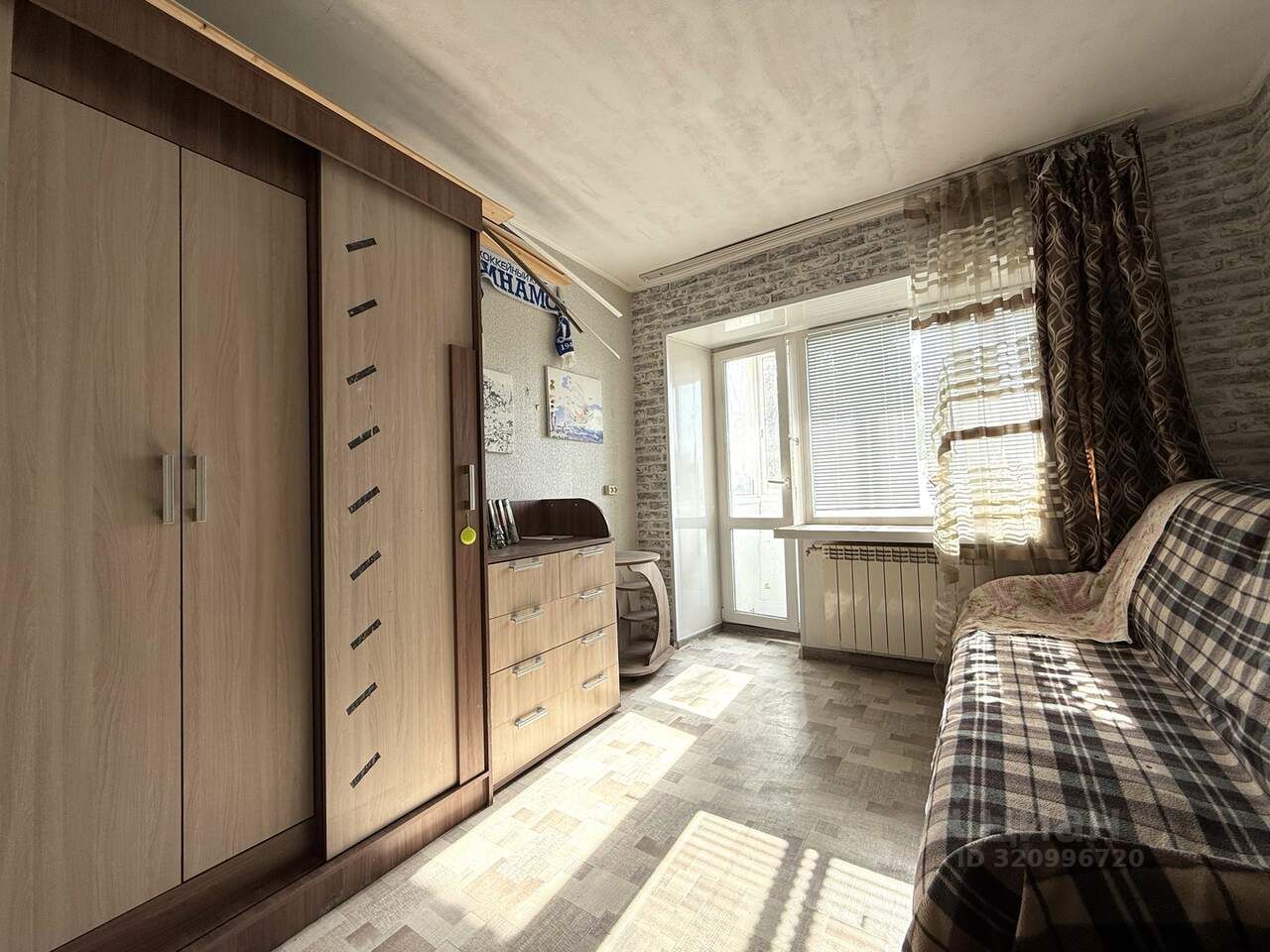 Комната в 6- комнатной квартире площадью 12,6 кв м с балконом, балкон застеклен пластиком. Окна выходят на солнечную сторону. Комната продается с мебелью и бытовой техникой.