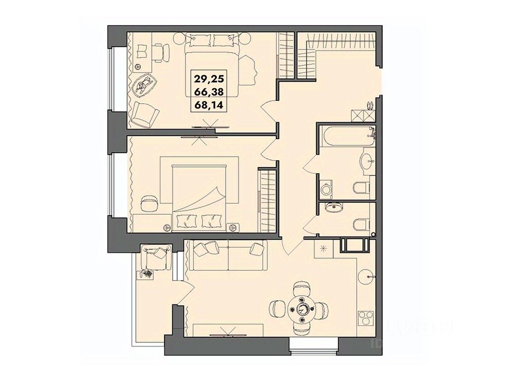 Общая площадь68,14 м2