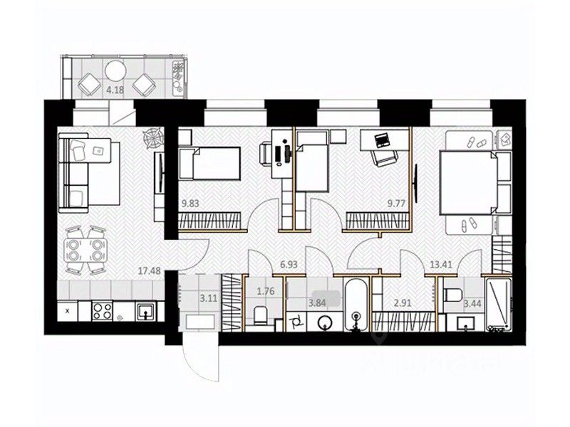 Общая площадь73,73 м2