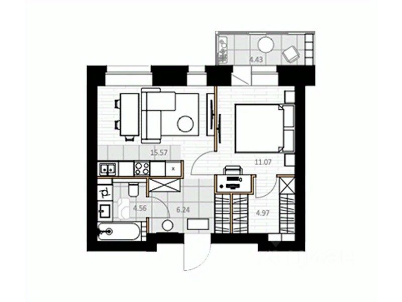Общая площадь43,74 м2