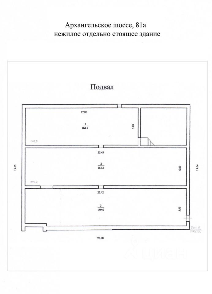 Высота помещений подвала: 2,0 м.