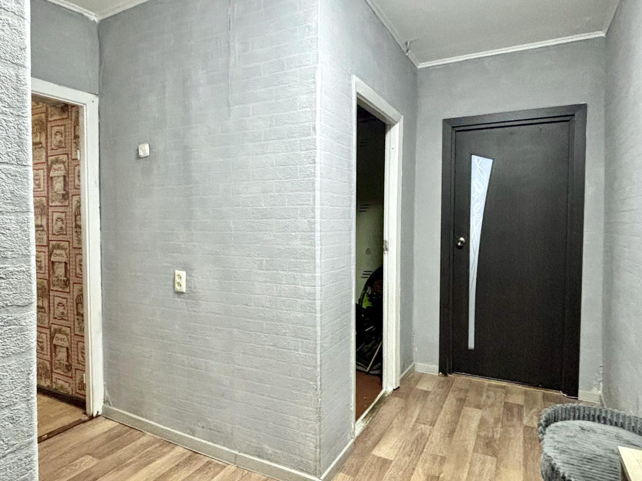 В квартире в 2-х комнатах выполнен косметический ремонт, третья комната без ремонта, сан.узел раздельный, требует косметического ремонта, входная дверь металлическая!