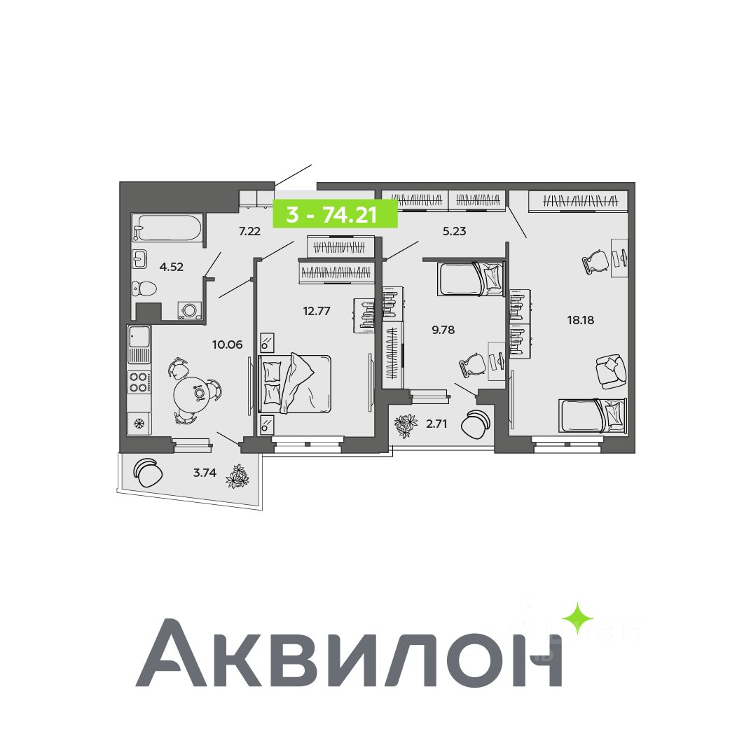 Отдел продаж работает без выходных. Продажа напрямую от Застройщика. Отделка квартиры White box (готова к ремонту). Сдача в 4 кв. 2027 года! ЖИЛОЙ КОМПЛЕКС ''Аквилон SEVEN'': Дом класса ''комфорт+''. Монолитно-кирпичная конструкция дома, утеплитель, фасадная облицовка, класс энергосбережения А+ (высокий). Экономия на коммунальных платежах до 40%: автоматизированный тепловой пункт с датчиками температуры, коллекторная бесстояковая разводка системы отопления с поквартирным учетом тепла, двухтарифные электросчетчики, современные приборы отопления уменьшенной высоты со встроенными терморегуляторами. Система inHOME: контроль за квартирой из мобильного приложения, ''умные'' счетчики, датчики защиты от пожара и протечек, IP-домофония с интерактивным многофункциональным экраном в каждой квартире Видеонаблюдение. Авторская отделка холлов, бесшумные лифты. Кладовые для хранения вещей.