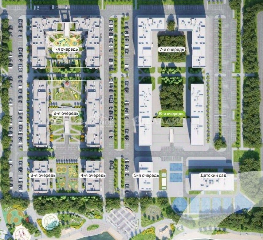 Во дворе: зеленая парковая зона, зоны отдыха, детские площадки для детей всех возрастов, спортивная площадка.
